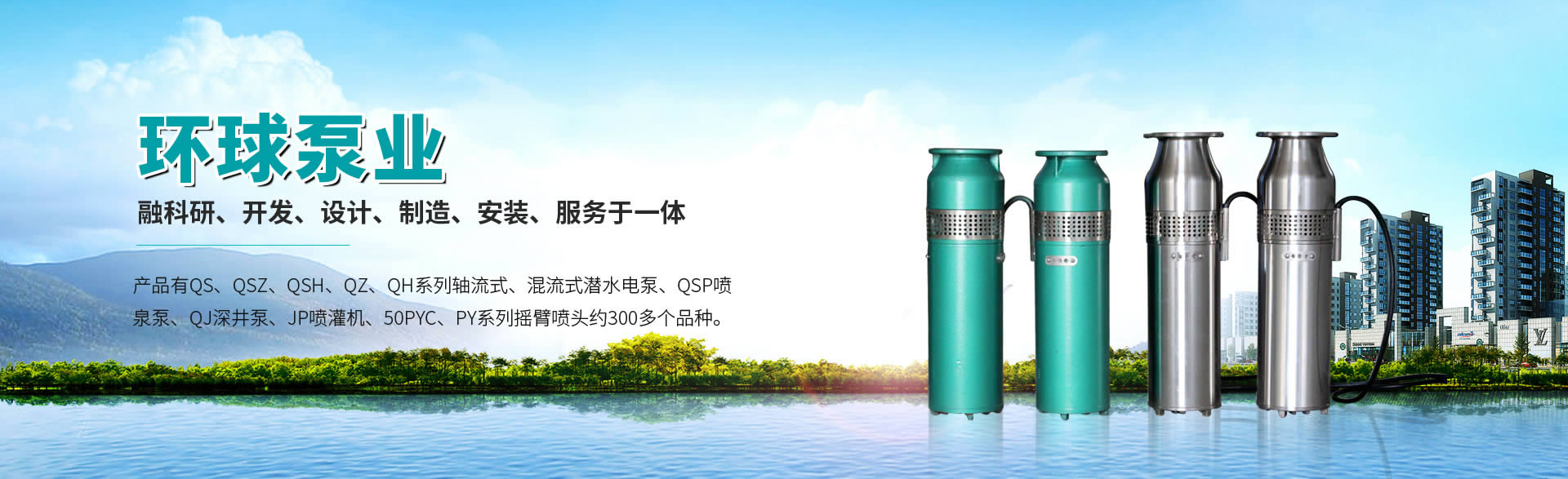 徐州環球泵業有限公司有QS、QSZ、QSH、QZ、QH系列軸流式、混流式潛水電泵,QSP噴泉泵,QJ深井泵,JP噴灌機,50PYC、PY系列搖臂噴頭約300多個品種。